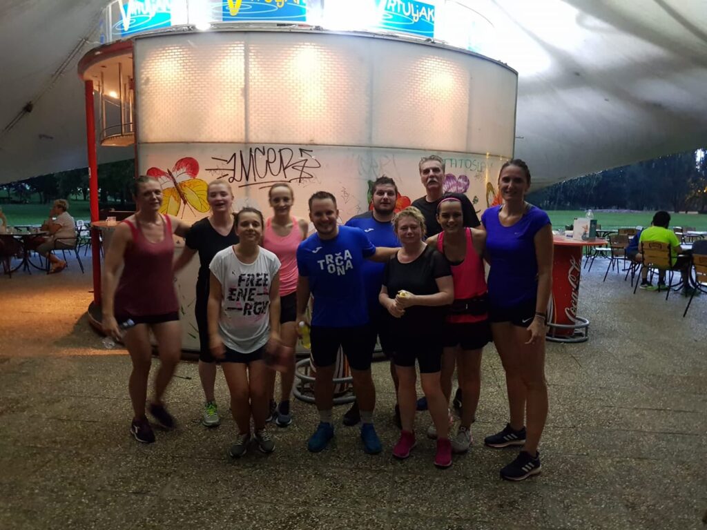 Ali sam i završila trening i okinula fotku sa svojom grupom, otišla u auto, skinula sve sa sebe (cijedilo se) i obukla šuškavac koji naravno, nisam ponijela na trening te zamotala noge u suncobran foliju za šajbu (!?) i odvezla se doma. Da me policija zaustavila, najmanji problem bi bio da nisam vezala pojas… Umjesto izlaska u petak navečer, produžila sam pod topli tuš i u krevet.